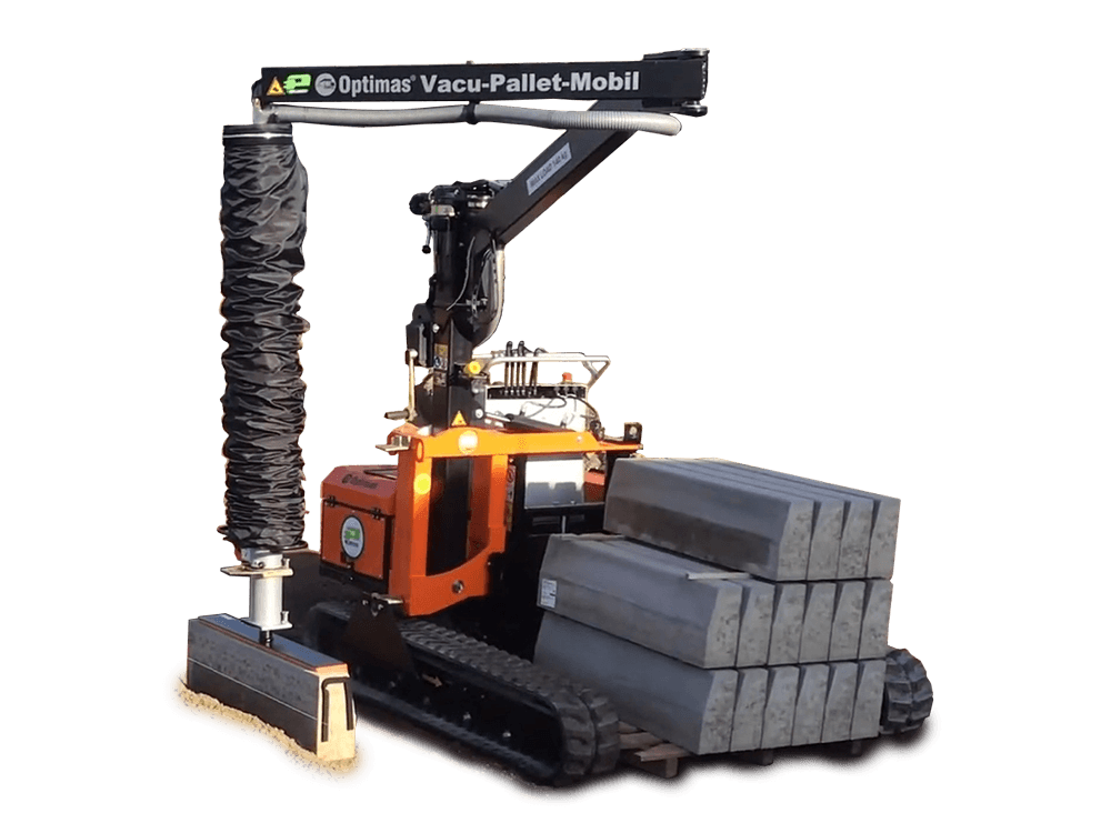 Sinds Bauma 2022 kan je het Optimas Vacu-Pallet-Mobile model ook met een elektromotor krijgen. Deze Vacu-Pallet-Mobil E wordt vooral geloofd omwille van zijn geluidsarme werking. Hij is Milieuvriendelijk en emissievrij. De Vacu-Pallet-Mobil E zorgt voor het pallettransport (1.600 kg) bij palletbreedten tot 1.320 mm en voor het moeiteloos, nauwkeurig en efficiënt leggen van beton- en natuursteenelementen tot 140 kg (optioneel tot 200 kg) met behulp van de geïntegreerde vacuümslangheftechnologie.